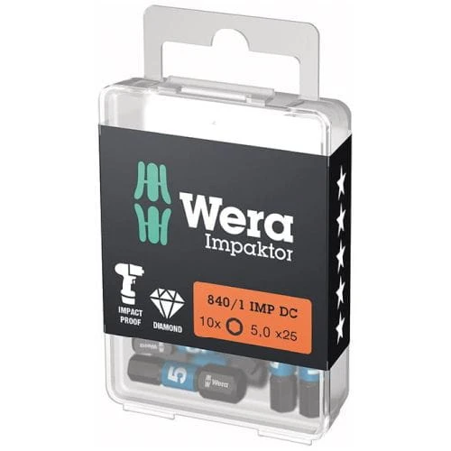 Wykonanie: zbliżony do DIN 3126 C 6,3 . Technologia Impaktor zapewniająca ponadprzeciętną trwałość: nawet 5-krotnie dłuższą żywotność produktu w porównaniu z bitami standardowymi i bitami ze strefą skrętu. Geometria Hex Plus zwiększająca o 20% statyczny moment obrotowy i zabezpieczająca gniazdo sześciokątne śruby. Końcówka robocza z powłoką diamentową. Dostawa w kasecie z tworzywa sztucznego z możliwością wielokrotnego zamykania i otwierania, 10 sztuk.