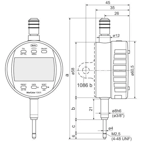 Czujnik zegarowy,elektr.,1086 R-HR 12,5 mm (0,5") 0,001 mm MAHR