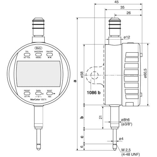 Czujnik zegarowy,elektr.,1087 R-HR 12,5 mm (0,5") 0,001 mm MAHR