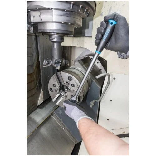Stal chromowo-wanadowa, polerowana i chromowana. Główka owalna i dźwignia przełączająca. Mały kąt powrotu umożliwia stosowanie w wąskich przestrzeniach, np. w silnikach, w budowie maszyn, w pojazdach rolniczych i urządzeniach, energia odnawialna (solarna, wiatrowa). Certyfikat VPA: statyczny moment obrotowy zgodny z DIN 3122: 1000 Nm. Z ergonomiczną rękojeścią 2-komponentową.