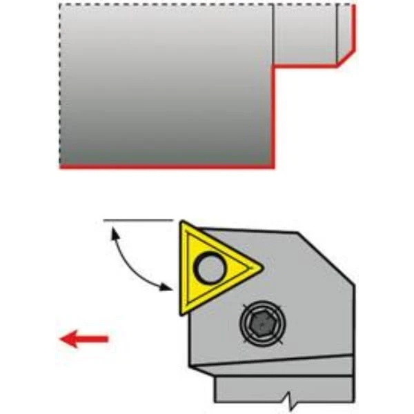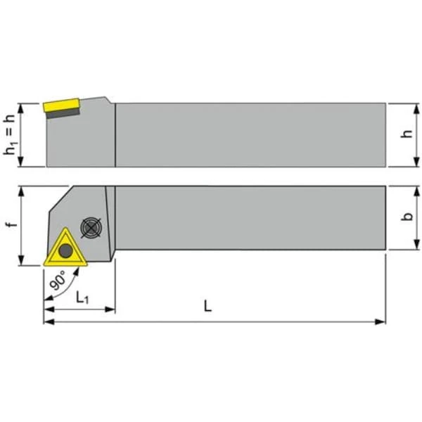 Wykonanie: nóż tokarski z wymienną płytką skrawającą, ujemną, kąt natarcia 0°, system mocowania dźwignią kolankową, korpus niklowany.