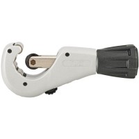 Wykonanie: korpus z odlewu ciśnieniowego magnezu, łożyskowany igiełkowo krążek tnący ze stali nierdzewnej, ze specjalną geometrią krawędzi skrawających do rur ze stali nierdzewnej, wymienny bez użycia narzędzi. 4 rolki prowadzące ze stali nierdzewnej, łożyskowane igiełkowo. Regulacja nacisku odbywa się przez lekkobieżne wrzeciono z łożyskiem stalowym. Obcinak do rur wyposażony jest również w wysuwane ostrze do gratowania. Duży, metalowy uchwyt z zapasowym krążkiem tnącym (w zakresie dostawy).