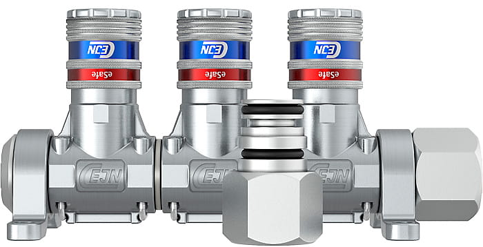 Seria 320 eSafe Multi-Link z wielokrotnymi wylotami zapewnia elastyczność i wysokie osiągi. Dostępne w jednostkach z 1 do 5 wylotów. Małą jednostkę można rozbudować do większej jednostki z maksymalnie pięcioma wylotami. Oddzielne jednostki można łatwo łączyć. Łączenie z wężem poliuretanowym i jednostkami FRL, aby utworzyć bezpieczny i elastyczny system dystrybucji powietrza o wysokich osiągach. eSafe zgodne z normami ISO 4414 i EN 983 i charakteryzuje się standardowymi funkcjami; obsługą jedną ręką, wysokim przepływem i długim okresem użytkowania
