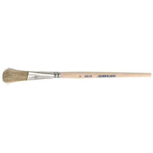 Wykonanie: płaski, czyste, jasne włosie chińskie , skuwka z białej blachy, bardzo gęsty . Trzonek drewniany, nielakierowany.