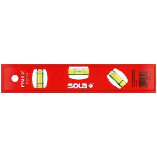 Wykonanie: z tworzywa sztucznego ABS, z paskiem magnetycznym o wysokiej sile przyczepności, odporne na stłuczenie libelle rurkowe ze szkła akrylowego. Z libellą kątową 45°. Dokładność pomiaru w pozycji normalnej 1,5 mm/m.