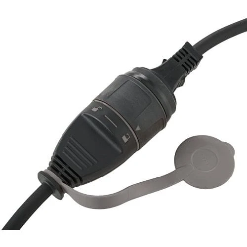 Typ kabla –w izolacji neoprenowej H07 RN-F 3G, z wtyczką ze stykiem ochronnym i gniazdem wtykowym z zamykaną pokrywą. Wtyczka może zostać zablokowana w złączu i w ten sposób zabezpieczona przed przypadkowym wyjęciem. Do stosowania w pomieszczeniach i stałego stosowania na zewnątrz.