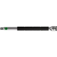 Wykonanie: ze stali chromowo-wanadowej, chromowana matowo. Z tuleją obrotową o niskim współczynniku tarcia do szybkiego dokręcania i luzowania, z mechanizmem Flexible-Lock. Gdy system Flexible-Lock jest aktywny, końcówka jest na stałe połączona z przedłużką; gdy system jest wyłączony, końcówkę wymienną klucza nasadowego można błyskawicznie wymienić.