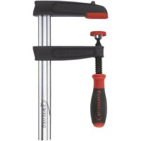 Wykonanie: z 2-komponentową rękojeścią z tworzywa sztucznego z dużą, ergonomiczną, miękką strefą zapewniającą lepszy chwyt. Drążona szyna profilowa rowkowana. szyna profilowa drążona ze zoptymalizowanej statycznie, ciągnionej na zimno stali jakościowej, ocynkowana galwanicznie, ramię stałe i ruchome z wysokogatunkowego, lakierowanego proszkowo żeliwa, wrzeciono z gwintem trapezowym, czernione oraz ruchoma, całkowicie płaska płytka dociskowa. Dla zapewnienia delikatnego mocowania ściski śrubowe o szerokości mocowania do 400 mm są wyposażone w nakładki ochronne z tworzywa sztucznego na płytce dociskowej i w górnej części.