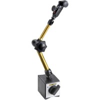 Wykonanie: statyw przegubowy, pięcioosiowy, blokada centralna z zaciskiem sprężynowym. Silny magnes z możliwością włączenia i wyłączenia, z podstawą pryzmatyczną, szybki zacisk w każdej pozycji. Ramiona ze stopu aluminium anodyzowanego na kolor złoty, z możliwością dowolnego łączenia ze sobą. Z precyzyjną regulacją w górnej części, z uniwersalnym zaciskiem przegubowym. Uchwyt do mocowania czujników zegarowych nominalna 6 i 8 mm oraz mocowanie z zaciskiem na jaskółczy ogon.