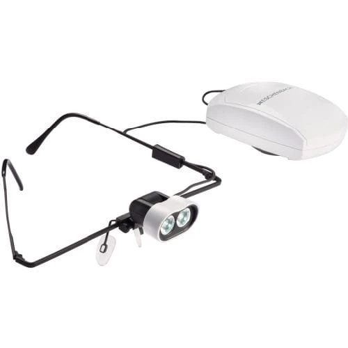 Wykonanie: mały, lekki i kompaktowy reflektor LED, skupianie światła na określoną odległość roboczą za pomocą optyki CPC (Compound Parabolic Concentrator), precyzyjna, nieoślepiająca wiązka światła, zasilanie za pomocą praktycznej, kompaktowej obudowy z bateriami i kablem, natężenie oświetlenia: ok. 3200 lx na 250 mm i 1200 lx na 400 mm, czas świecenia: ok. 8 h w trybie normalnym i 14 h w trybie Eco przy użyciu baterii o długiej żywotności lub baterii akumulatorów. Dostawa w etui z twardej pianki.