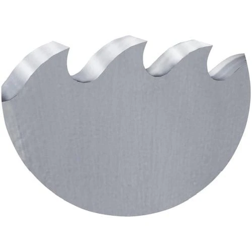 Wykonanie: DIN 1838 B –ząb łukowy, zęby do cięcia zgrubnego. Do grubościennych materiałów i większych głębokości przecinania. Dokładność wykonania wpustów odpowiada tolerancjom według DIN 1840, szlif wklęsły. Niepowlekana, hartowana i wielokrotnie odpuszczana do twardości 63–65 HRC –zgodnie z zaleceniami producenta z lub bez kołnierza–precyzyjnie szlifowana. Bez otworów dodatkowych.