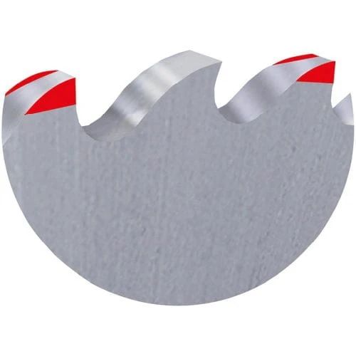 Wykonanie: DIN 1838 C –ząb łukowy z ostrzami wstępnymi i wykańczającymi, uzębienie zgrubne. Dzielenie wióra umożliwia wysoką wydajność skrawania. Do obróbki materiałów grubościennych oraz do cięcia na głębokości od średniej do dużej.Dokładność wykonania wpustów odpowiada tolerancjom według DIN 1840, szlif wklęsły. Niepowlekana, hartowana i wielokrotnie odpuszczana do twardości 63–65 HRC –zgodnie z zaleceniami producenta z lub bez kołnierza–precyzyjnie szlifowana. Bez otworów dodatkowych.
