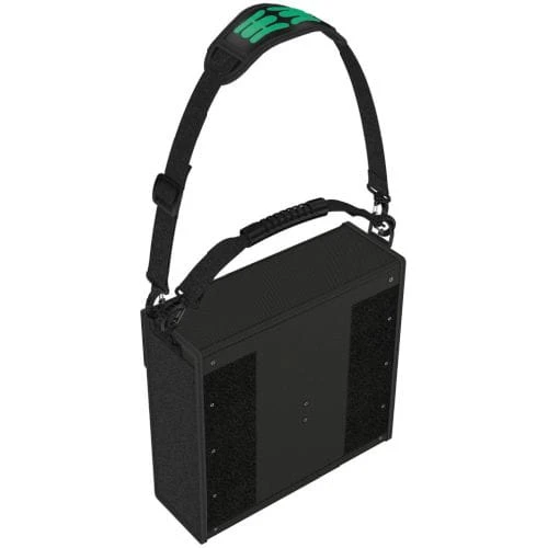 Wykonanie: korpus torby o stabilnym kształcie z płytkami z tworzywa sztucznego kaszerowanymi tkaniną oraz dużą odpornością na przecięcia i przekłucia. Chroni narzędzia przed wilgocią i uszkodzeniami. Dzięki systemowi rzepów możliwe jest łączenie toreb Wera 2go oraz zestawów i kompletów toreb tekstylnych ze strefą rzepów. W ten sposób można szybko i łatwo skompletować torbę, która dostosowana jest do odpowiednich wymogów pracy.