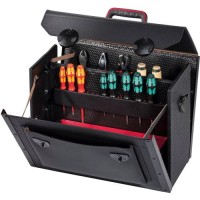 Wykonanie: z bardzo grubej, tłoczonej skóry bydlęcej w kolorze czarnym, z wytrzymałymi ściankami z materiału Con-Pearl® odpornego na zadrapania, odkształcenia i deformacje, działanie wilgoci, smarów i chemikaliów, korpus torby wzmocniony profilami aluminiowymi, uchwyt do przenoszenia o ergonomicznym kształcie z wyściełanymi wgłębieniami na palce i otworem w uchwycie. Bardzo stabilna, ze zintegrowanymi ślizgaczami zabezpieczającymi spód. Zamykana na 2 zamki zatrzaskowe. Dostawa bez zawartości.
