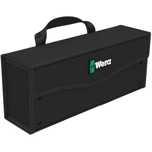 Wykonanie: korpus torby o stabilnym kształcie z płytkami z tworzywa sztucznego kaszerowanymi tkaniną oraz dużą odpornością na przecięcia i przekłucia. Chroni narzędzia przed wilgocią i uszkodzeniami. Dzięki systemowi rzepów możliwe jest łączenie toreb Wera 2go oraz zestawów i kompletów toreb tekstylnych ze strefą rzepów. W ten sposób można szybko i łatwo skompletować torbę, która dostosowana jest do odpowiednich wymogów pracy.
