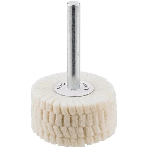 Wykonanie: z listów filcowych o grubości 2 mm. Listki umożliwiają idealne dopasowanie narzędzia do obrabianego konturu oraz redukują obciążenie termiczne. Wieloszczelinowe listki filcowe zapewniają jeszcze większą elastyczność w przypadku nieregularnych kształtów i konturów. Chwyt ? 6 mm.