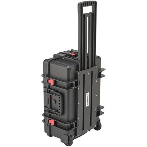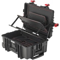 Wykonanie: z odpornego polipropylenu koloru czarnego, odporna na pękanie i uderzenia, pyło- i wodoszczelna oraz odporna na temperaturę w zakresie od -33 °C do +90 °C. Zamykana hermetycznie, z zaworem wyrównującym ciśnienie. Z wytrzymałymi tablicami narzędziowymi i stabilnym, gumowanym uchwytem do noszenia, zapadkowym, ergonomicznym uchwytem teleskopowym i lekko obracającymi się kółkami. Wysokość części spodniej 190 mm. Wytrzymałość obciążeniowa walizki do 25 kg. Bardzo stabilna i odporna. Zamykana na dwa zamki z mechanizmem zatrzaskowym i kłódki (nie wchodzą w zakres dostawy). Walizka przystosowana do przewozu samolotem.