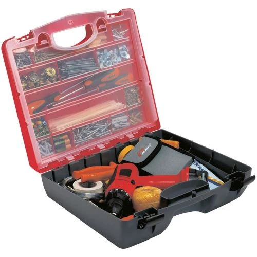 Wykonanie: z tworzywa sztucznego. Część spodnia z wkładką z gumy piankowej, pokrywa ze zintegrowanym magazynkiem na drobne elementy i 16 przegródkami. Dostawa bez zawartości.