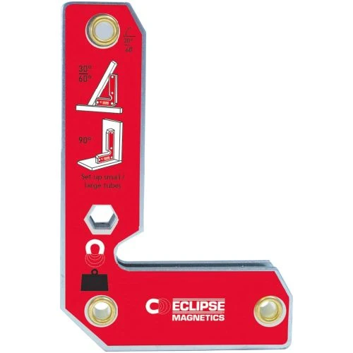 Wykonanie: wewnętrzne i zewnętrzne zaciski spawalnicze składają się z dwóch niezależnych prostokątnych magnesów, które zapewniają równomierną i stałą siłę przyciągania, gdy obie strony są przymocowane do elementów obrabianych. Otwory mocujące służą do łączenia ze sobą dwóch magnesów oraz jako elementy mocujące. Sześciokątny otwór w magnesie zwiększa efekt dźwigni. Z kątami 30°, 60° i 90°.