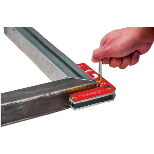 Wykonanie: wewnętrzne i zewnętrzne zaciski spawalnicze składają się z dwóch niezależnych prostokątnych magnesów, które zapewniają równomierną i stałą siłę przyciągania, gdy obie strony są przymocowane do elementów obrabianych. Otwory mocujące służą do łączenia ze sobą dwóch magnesów oraz jako elementy mocujące. Sześciokątny otwór w magnesie zwiększa efekt dźwigni. Z kątami 30°, 60° i 90°.