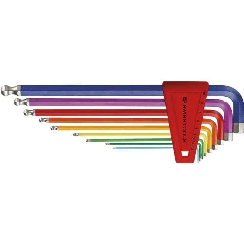 Zest.kluczy trzpien.kąt. w uchw.z tworz.sztuczn. 9-częśc.,1,5-10mm Rainbowkońc.kulis.PB Swiss Tools
