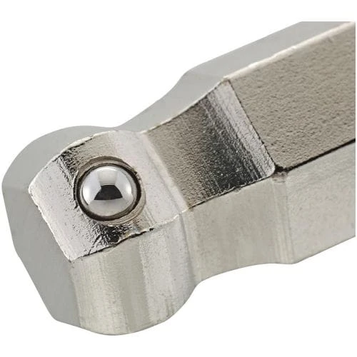 Wykonanie: DIN 911 L, ISO 2936 L. Ze stali chromowo-wanadowej, hartowane na wskroś i chromowane. Od rozmiaru klucza 3 mm z mechaniczną funkcją przytrzymywania na końcówce kulistej do stosowania w sytuacjach, gdy magnetyczne przytrzymanie nie jest możliwe lub wskazane. Ramię krótkie fazowane. Od rozmiaru klucza 4 mm oznakowanie z rozmiarem klucza, normą ISO i rodzajem materiału. Dostawa w uchwycie.