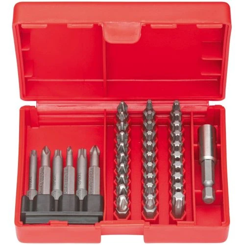 Wykonanie: bity ciągliwo-twarde w kasecie z tworzywa sztucznego. Bity rozmieszczone są w przejrzysty sposób, dzięki czemu można szybko wyciągnąć właściwe narzędzie.
