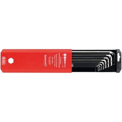 Wykonanie: DIN 911 L, ISO 2936 L. Ze stali chromowo-wanadowej, hartowany na wskroś i niklowany na wysoki połysk. Końcówki kluczy fazowane. Od rozmiaru 3 mm oznakowanie z rozmiarem, normą ISO i rodzajem materiału.