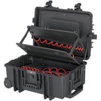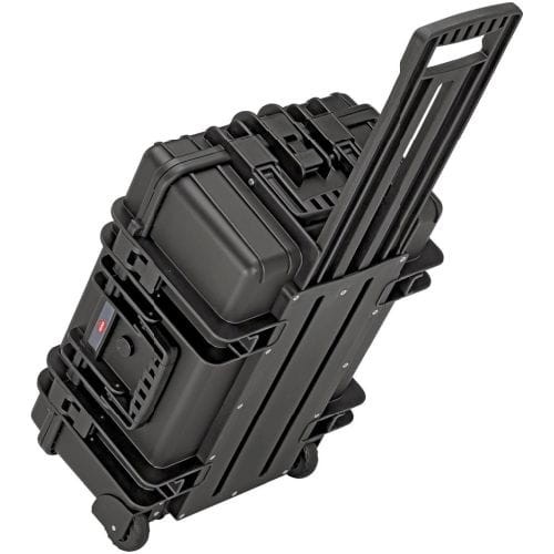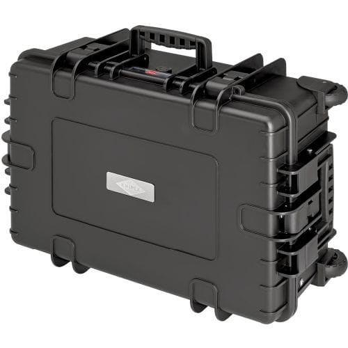 Wykonanie: z odpornego polipropylenu koloru czarnego, odporna na pękanie i uderzenia, pyło- i wodoszczelna oraz odporna na działanie temperatury w zakresie od -30 °C do +80 °C. Zamykana hermetycznie, z zaworem wyrównującym ciśnienie. Z wytrzymałymi tablicami narzędziowymi i stabilnym, gumowanym uchwytem do przenoszenia, blokowanym, ergonomicznym uchwytem teleskopowym i lekko obracającymi się kółkami. Wysokość części spodniej 236 mm. Łatwe otwieranie i zamykanie dzięki sprężynom gazowym. Wytrzymałość obciążeniowa walizki do 35 kg. Bardzo stabilna, z możliwością układania w stosy i wytrzymała. Zamykana na dwa zamki z mechanizmem zatrzaskowym i kłódki (nie wchodzą w zakres dostawy). Walizka przystosowana do przewozu samolotem.